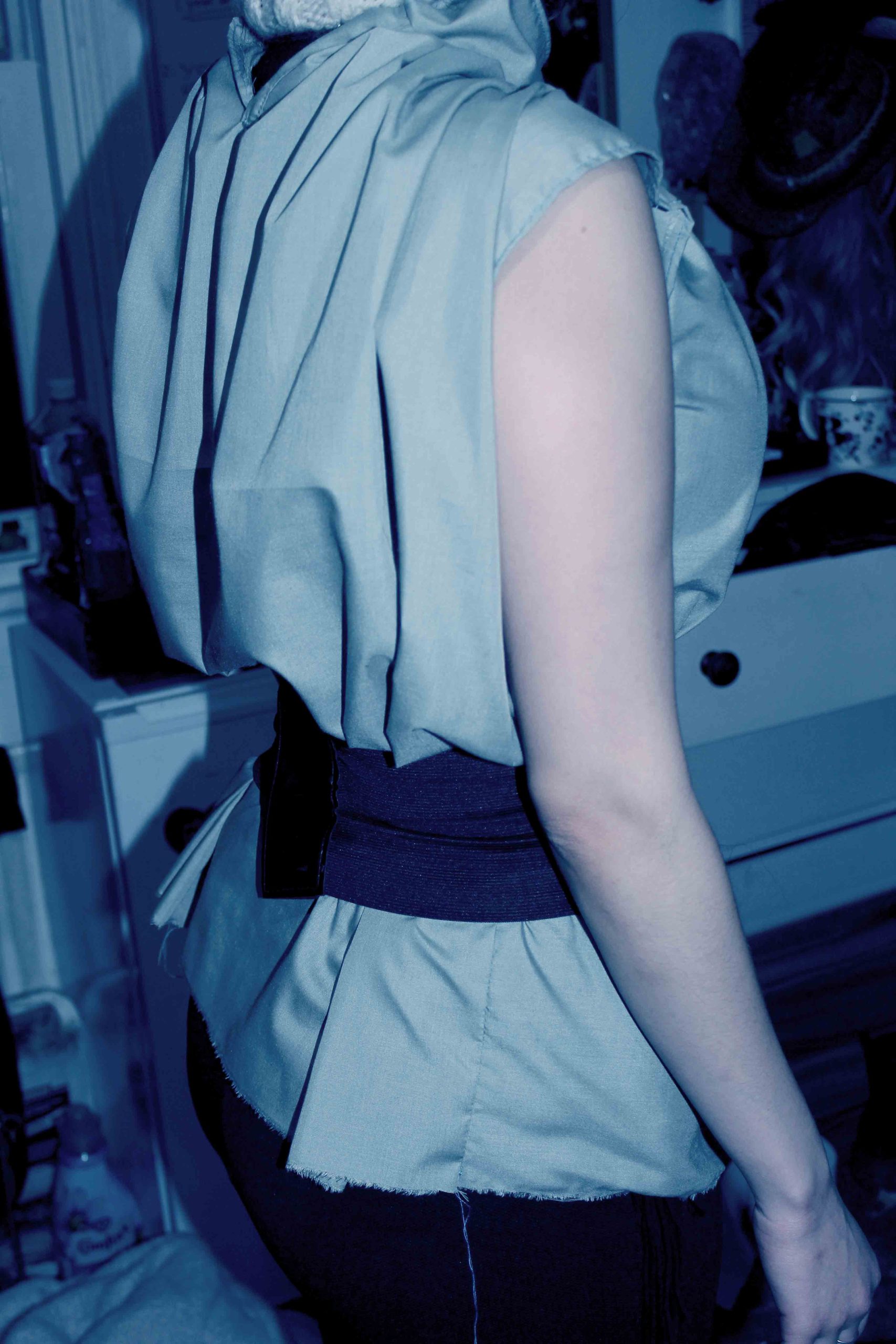 The first stage of the costume making, the shirt and the neck piece finished, except of the buttons to close it. The corset used only to visualize the final idea, we wont use it for the final design, we will make one from scratch to match the neck piece.
