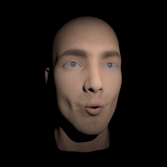 The above three base blend shape emotions used in various amounts and mixes, together with the head rotation of the rig made previously. Sadness, frustration, disappointment, cheekiness/mischief, calmness/rest (the addition of the blink blend shape) and anger.